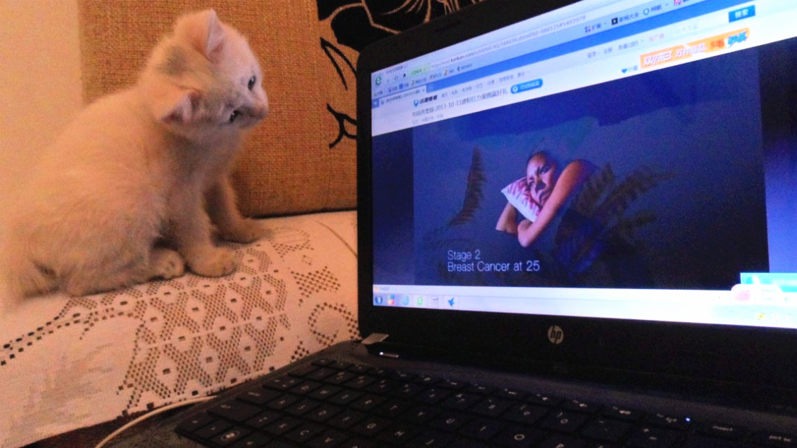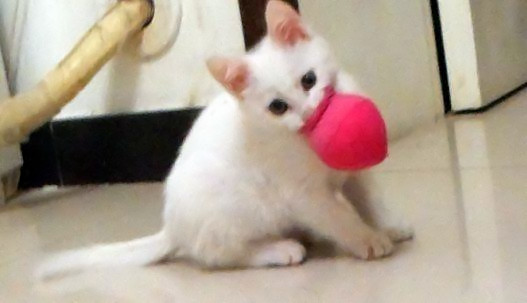 ? ? 去年臨近中秋的時(shí)候,去超市回來(lái)的路上過(guò)一丁字路口的時(shí)候,一只看上去不到一個(gè)月的小貓,差點(diǎn)被走在前面的人踩著,她走的搖搖晃晃,一跛一跛的,走的很蝸牛。走近一看,身體瘦瘦的,像是幾天沒吃東西,一只爪子像是被人踩過(guò),腿也受了傷,一身白毛臟臟的,但生的很可愛,不知為什么卻過(guò)著流浪的日子,頓生憐憫之心。我跟小耳朵說(shuō),貓是我們?nèi)祟惖暮门笥?,看她現(xiàn)在的樣子,真是太可憐了。心想,把她抱回家喂養(yǎng)一段時(shí)間,長(zhǎng)大一點(diǎn)再放到我們住的小區(qū)里,自己也就會(huì)覓食吃了,院子里那些其它貓貓們就不會(huì)欺負(fù)她、嫌棄她三毛了,以后也就能遇到她的駙馬爺了,哈哈…