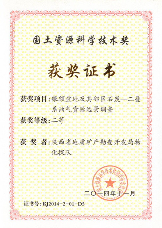 ? ? “銀額盆地及其鄰區(qū)石炭—二疊系油氣資源遠(yuǎn)景調(diào)查項(xiàng)目”獲國土資源科學(xué)技術(shù)獎(jiǎng)獲獎(jiǎng)證書