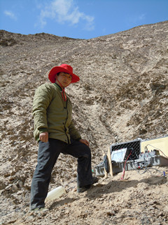 ? ? 高原缺氧 不缺精神。進(jìn)入工區(qū)后,被眼前的一幕幕驚呆了,與想象的工區(qū)環(huán)境大相徑庭。此時的夏日哈木狂風(fēng)肆虐,飛沙滿天,陰晴不定,時有風(fēng)雪交加,夜間氣溫會降至零攝氏度以下。區(qū)內(nèi)海拔4000多米,地形陡峭,相對高差大,加之幾乎沒有植被,項目組好多人員出現(xiàn)嚴(yán)重不適,頭疼、氣短、嘴唇開裂,加之區(qū)內(nèi)不明原因,蚊子多得出奇,只要你人站在帳蓬外面總有上百只蚊子在叮咬你,一會兒頭上、臉上、手上全是包。面對如此惡劣的環(huán)境,田靖和項目組的人員逐一進(jìn)行談心,鼓勵大家從心理上戰(zhàn)勝惡劣的自然環(huán)境,穩(wěn)定了軍心。為了保證施工進(jìn)度和防止發(fā)生不安全事故,田靖同志總是利用休息時間先對不熟悉的區(qū)塊進(jìn)行踏勘做到心中有數(shù),面對惡劣的地形,他時時強(qiáng)調(diào)安全,隔三差五的開會強(qiáng)調(diào),每天開工上山、收工下山用對講機(jī)通知到項目組的每個人,并且制定了嚴(yán)格的安全制度,使每個人從心理上重視安全,整個工區(qū)沒有發(fā)生一起意外事故。