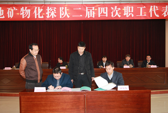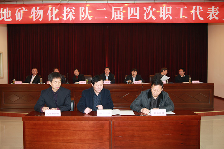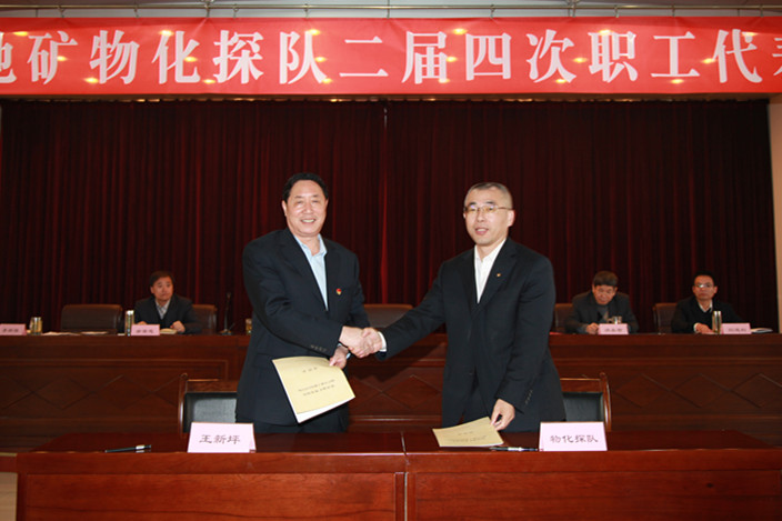 ? ? 2月15日,物化探隊二屆四次職工代表大會在西安隊部召開,隊黨委書記、隊長王新坪代表班子作述廉述職報告并作重要講話;副隊長李新勝解讀了《陜西地礦物化探隊經濟責任制暫行辦法》。其他隊級領導、職工代表、列席代表、各實體部門負責人,及受表彰的先進個人共70余人參加會議。